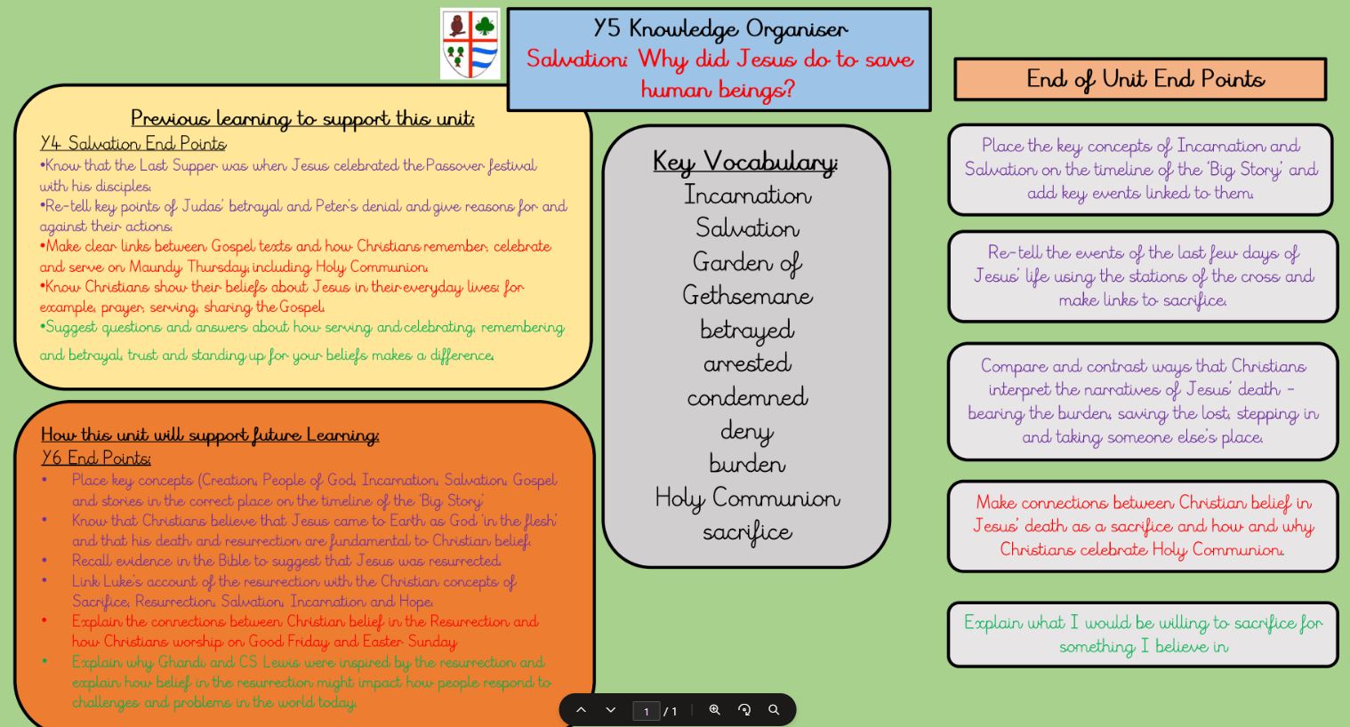 Knowledge Organisers should be used to support your child throughout the topic being covered. They provide end points which is the knowledge that children will gain from this unit of work. They also show the learning that has taken place before and how this will link to future learning. Children will use these both in school and at home to supplement their learning, allowing us to work collaboratively together.